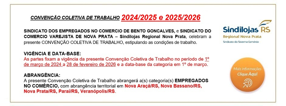 do Comércio Varejista, anteriormente definidas pelo Sindilojas de Bento Gonçalves. Passou a