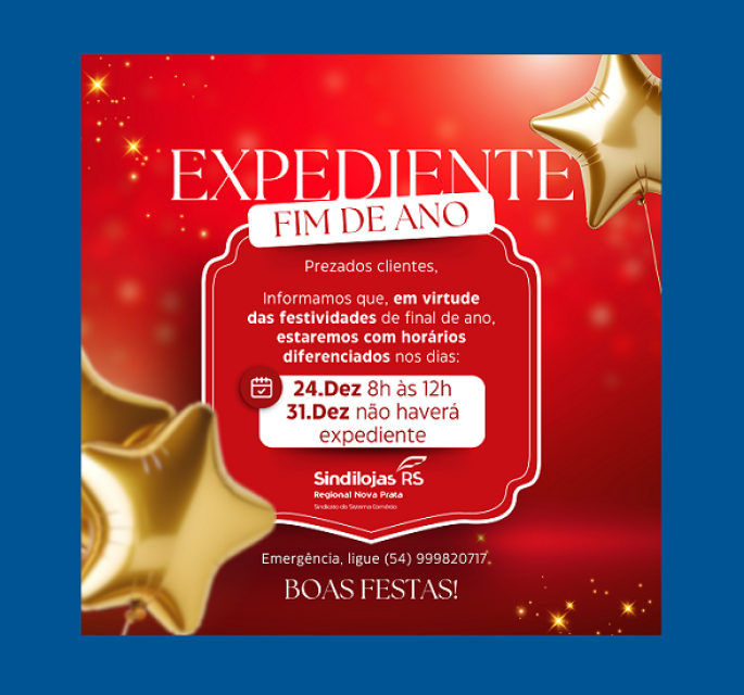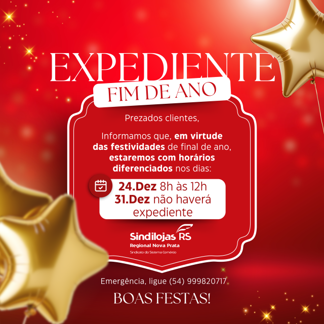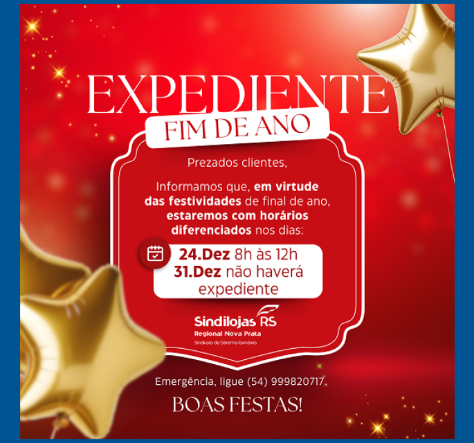 Sindilojas Regional Nova Prata - INFORMA: Horário de Expediente para as Festas de Fim de Ano “2024”.
