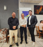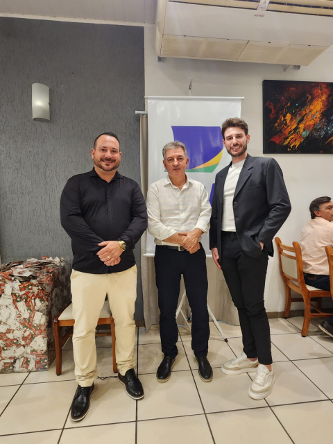 Na oportunidade, o Presidente Nelson, fez uma foto com o Presidente da CDL Nova Bassano Vagner Paulo Balzan e Vice-Presidente Fernando Dalcortivo.