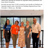 > O Executivo do Sindilojas Regional Nova Prata - Ariovaldo C. Ribeiro, participou de uma reunião na Prefeitura de Fagundes Varela, com a Coordenadora Geral do Governo, Marina Taglian, a Secretária de Gestão, Finanças e Desenvolvimento Econômico, Deisi Zat, juntamente com a Lisângela Antonini, Diretora do Senac Bento Gonçalves e Quelem Maciel, Soluções Corporativas do Senac Bento Gonçalves.