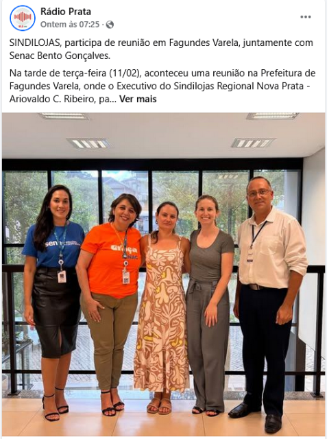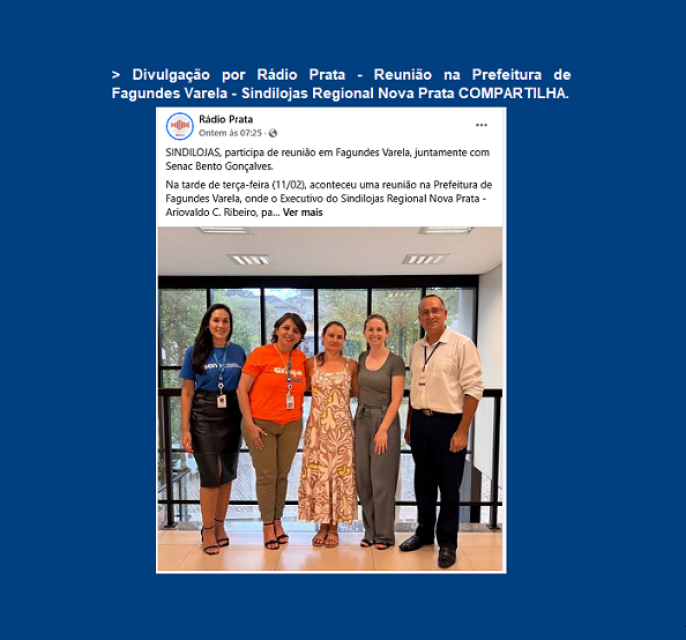 Divulgação por Rádio Prata - Reunião na Prefeitura de Fagundes Varela - Sindilojas Regional Nova Prata COMPARTILHA.