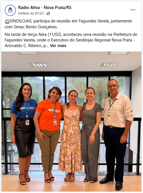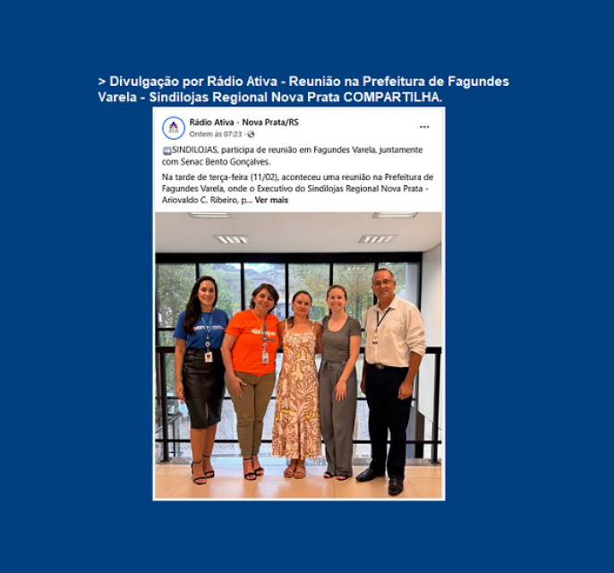 14/02 - Divulgação por Rádio Ativa - Reunião na Prefeitura de Fagundes Varela - Sindilojas Regional Nova Prata COMPARTILHA.
