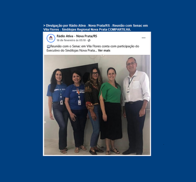 Divulgação por Rádio Ativa - Nova Prata/RS - Reunião com Senac em Vila Flores - Sindilojas Regional Nova Prata COMPARTILHA.