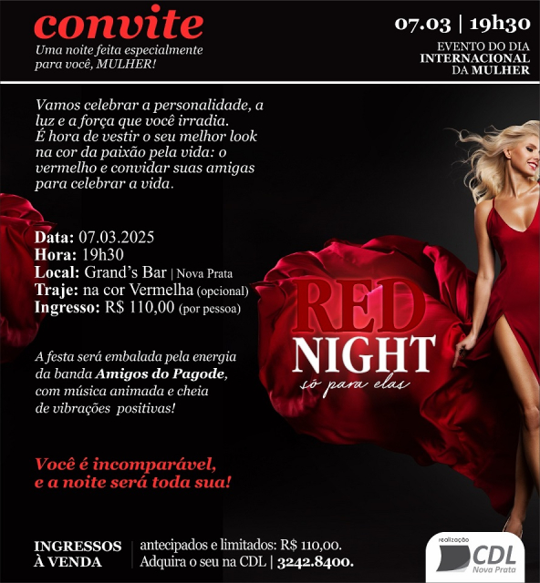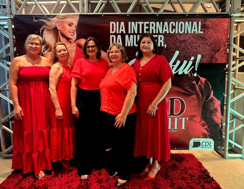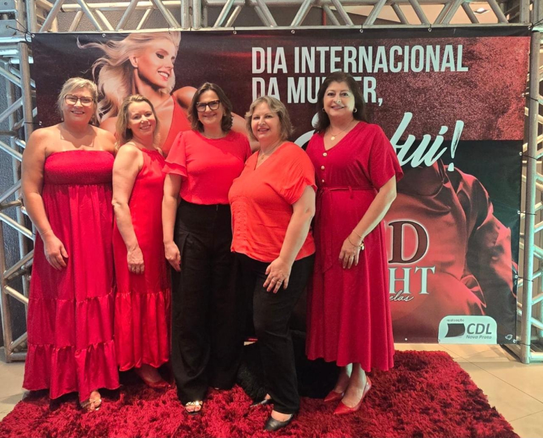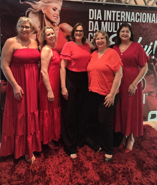 > O tradicional jantar para comemorar o Dia Internacional da Mulher, realizado pela CDL Nova Prata, aconteceu na sexta-feira (07/03). Esse ano o vermelho em alta, e foi o Jantar “RED NIGHT só para elas”. Como em todos os anos o SINDILOJAS, participa, e representaram a entidades, às Diretoras Nilsa Goreti Zanotto Vazatta, Natalice Pagnoncelli, Ivania Galante Bolsoni e Sonia Reginato, juntamente com a esposa do executivo, Fátima de Lurdes Duz Ribeiro.