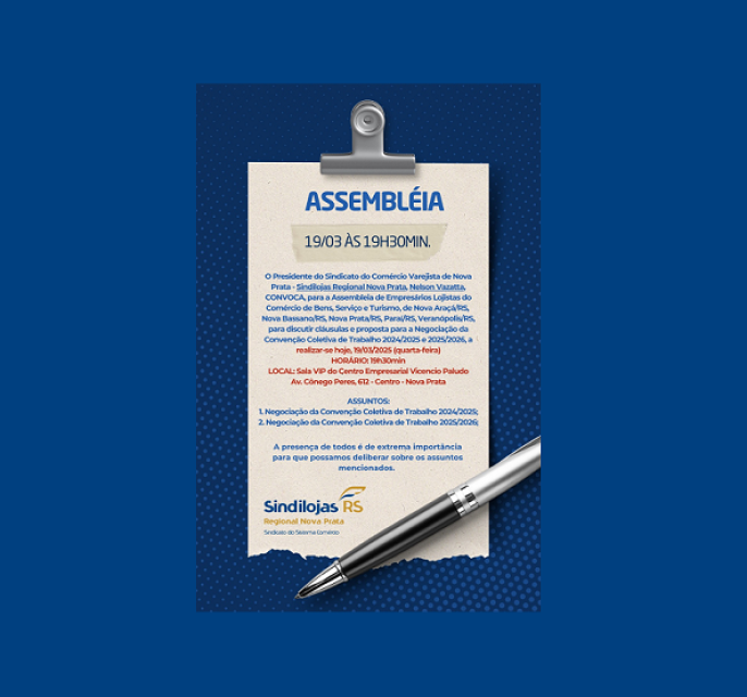 19/03 - HOJE (19/03) - Assembleia de LOJISTAS para Convenção Coletiva de Trabalho 2024/2025 e 2025/2026.