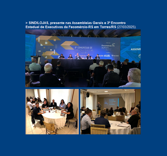 02/04 - SINDILOJAS, presente nas Assembleias Gerais e 3º Encontro Estadual de Executivos da Fecomércio-RS em Torres/RS (27/03/2025).