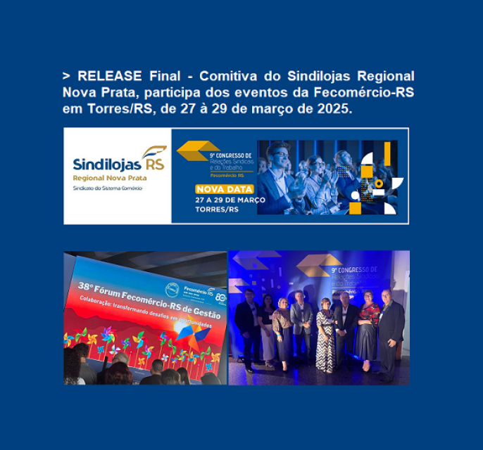 11/04 - RELEASE Final - Comitiva do Sindilojas Regional Nova Prata, participa dos eventos da Fecomércio-RS em Torres/RS, de 27 à 29 de março de 2025.