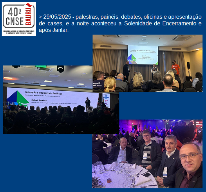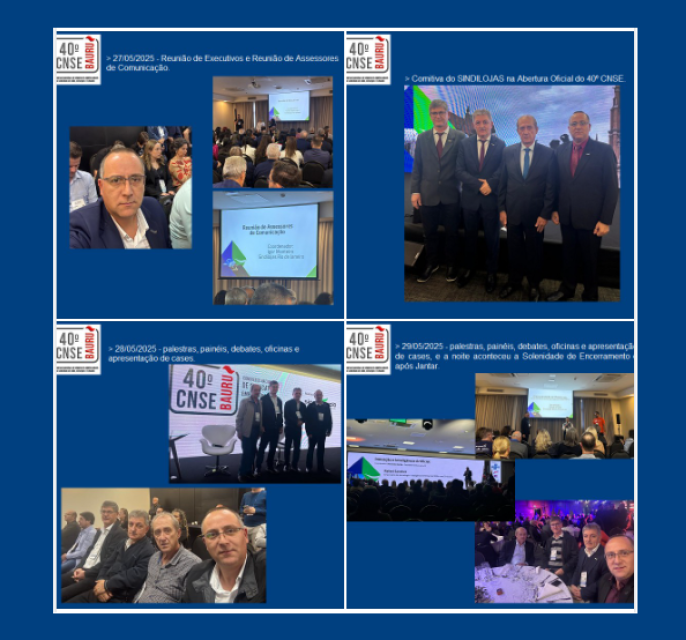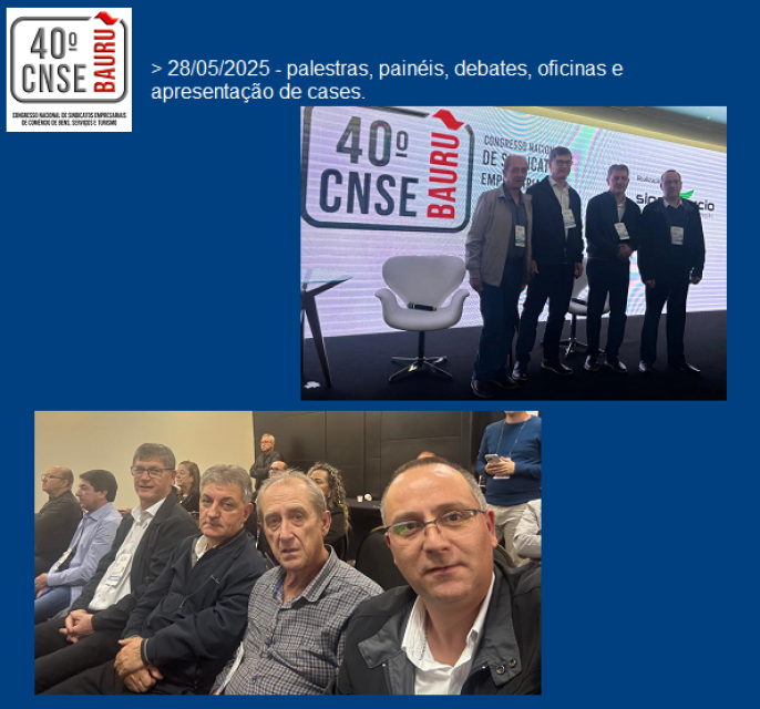 06/06 - Representantes do SINDILOJAS, no 40º Congresso Nacional de Sindicatos Empresariais de Comércio de Bens, Serviços e Turismo, em SP, nos dias 28, 29 e 30 de maio de 2025.