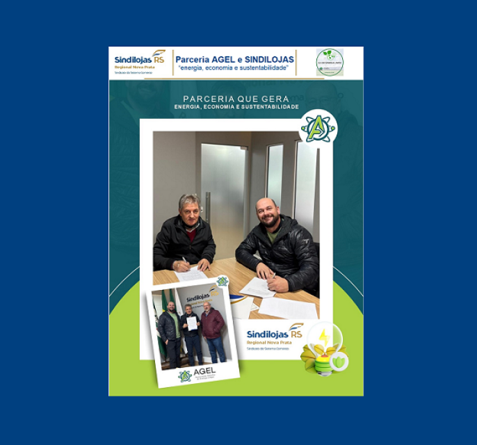 > Como já informado, na terça-feira (01/07), o Sindilojas Regional Nova Prata, assinou contrato de parceria/convênio com a AGEL (Associação Gaúcha de Energia Limpa), onde juntos oferecerão “energia, economia e sustentabilidade”, para as empresas que aderirem em se associar a AGEL.
