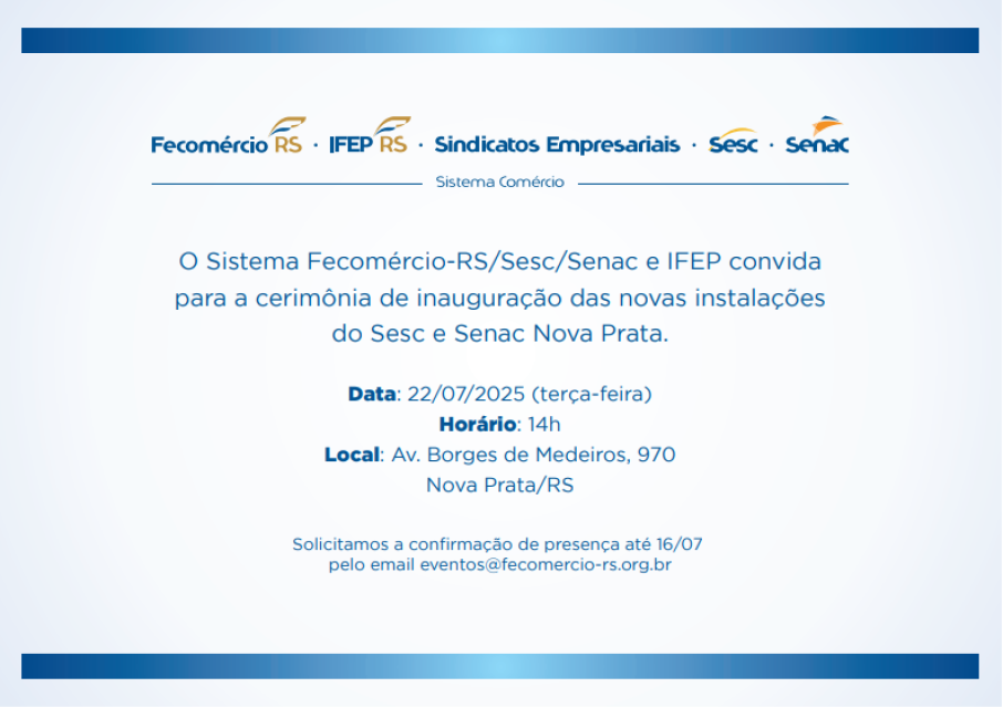 Para o Presidente do Sistema Fecomércio-RS/Sesc/Senac e IFEP, Luiz Carlos Bohn, o espaço representa o compromisso do Sistema com a comunidade, com o bem-estar das pessoas e com o futuro da nossa sociedade. “Esta estrutura foi cuidadosamente planejada para acolher, inspirar e transformar. E é fundamental lembrar que nada disso seria possível sem a contribuição dos empresários do comércio de bens, serviços e turismo do nosso Estado. São eles os grandes responsáveis por permitir que o Sesc e o Senac continuem impactando vidas e construindo caminhos de transformação. Sigamos juntos, firmes no nosso compromisso com as pessoas e com o futuro”, destacou.