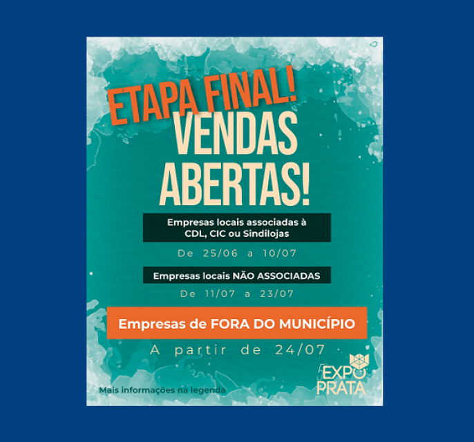 > Etapa final de vendas: Agora é a vez dos EXPOSITORES DE FORA DE NOVA PRATA!
