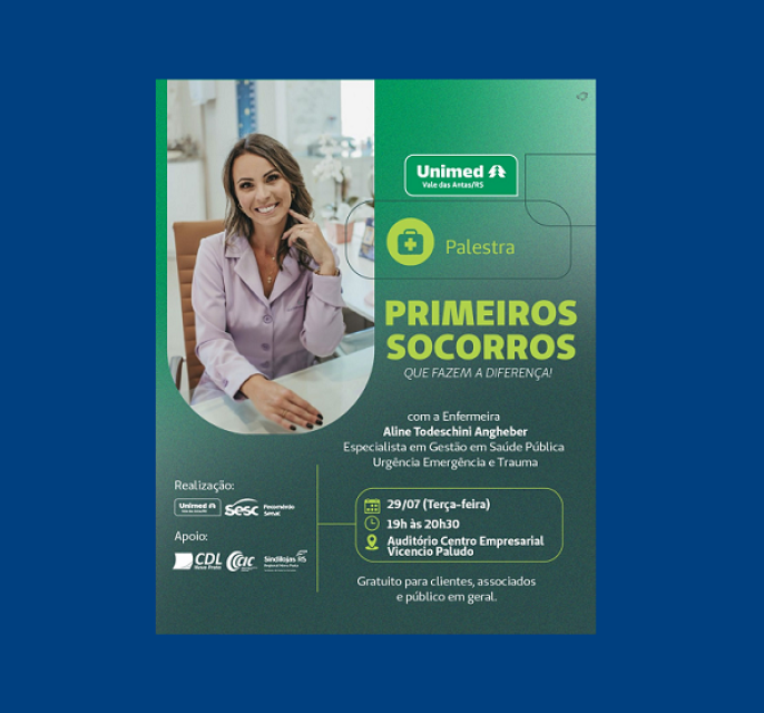 Participe da palestra “Primeiros Socorros que fazem a diferença!”, com a enfermeira Aline Todeschini Angheber, especialista em Urgência, Emergência e Trauma. Uma oportunidade prática e essencial para quem quer estar preparado para agir com segurança até a chegada do socorro profissional.
