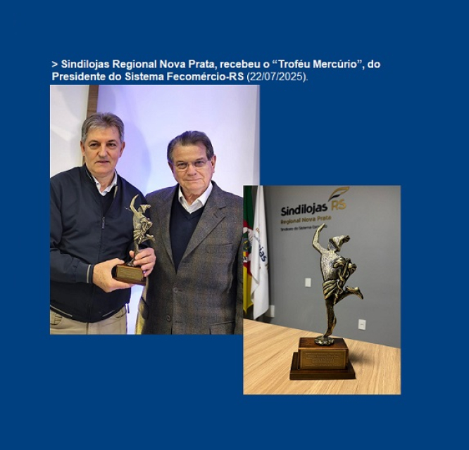 25/07 - Sindilojas Regional Nova Prata, recebeu o “Troféu Mercúrio”, do Presidente do Sistema Fecomércio-RS (22/07/2025).