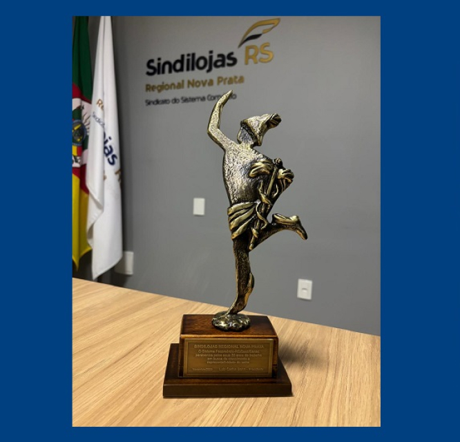 > Terça-feira (22/07), data que aconteceu a inauguração da Unidade Sesc e Senac em Nova Prata, na oportunidade o Sindilojas Regional Nova Prata, recebeu o “Troféu Mercúrio”, do Presidente do Sistema Fecomércio-RS/Sesc/Senac e IFEP, Luiz Carlos Bohn. É uma homenagem da Fecomércio-RS a entidades que se destacam no cenário empresarial gaúcho. A entrega do troféu geralmente ocorre em eventos que marcam datas importantes para as entidades homenageadas. Nesse caso o SINDILOJAS por ser um dos braços do Sistema junto com Sesc e Senac, e aproveitando a oportunidade recebeu o troféu em reconhecimento pelos 30 anos de atuação para o fortalecimento do setor na região, que será comemorado em novembro, fundado em 22/11/1995.