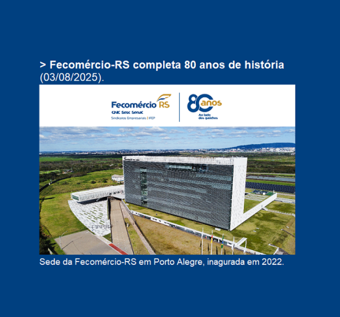 04/08 - Fecomércio-RS completa 80 anos de história (03/08/2025).