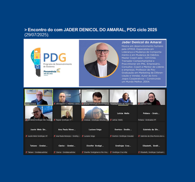 > Dando continuidade ao PDG - Programa de Desenvolvimento de Gestores - Ciclo 2025, na terça-feira (29/07), aconteceu mais um encontro on-line.