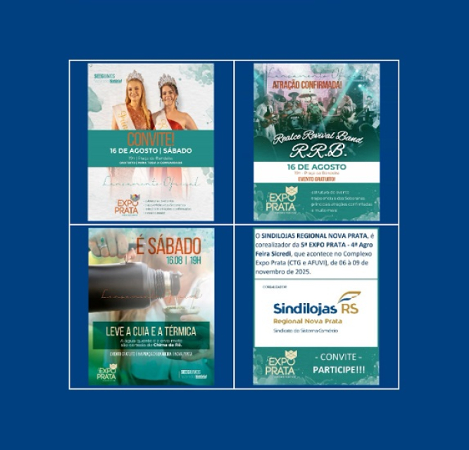 O SINDILOJAS REGIONAL NOVA PRATA, é correalizador da 5ª EXPO PRATA - 4ª Agro Feira Sicredi, que acontece no Complexo Expo Prata (CTG e AFUVI), de 06 a 09 de novembro de 2025.