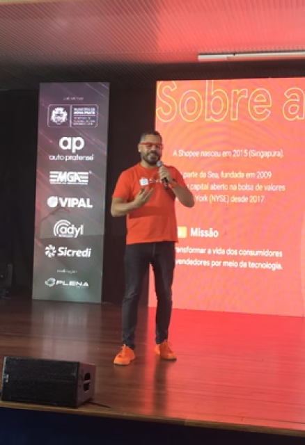 Após o lançamento, aconteceu a Palestra com Leonardo Silva, head de engajamento com vendedores da Shopee, que lidera iniciativas de alto impacto para desenvolver vendedores e impulsionar negócios locais na plataforma da Shopee. Ele é o rosto e a voz do Parada Shopee, série de vídeos que viaja o Brasil contando as histórias inspiradoras de quem transformou sua realidade por meio da internet.