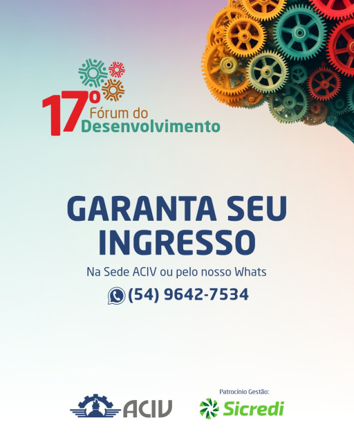 Programação oficial do “17º Fórum do Desenvolvimento”, realizado pela ACIV Veranópolis - Sindilojas Regional Nova Prata - APOIA e CONVIDA: