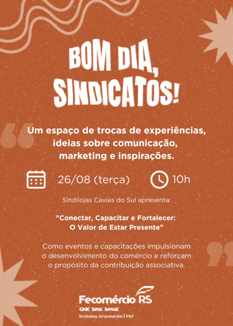 Encontro BOM DIA, SINDICATOS! - Fecomércio-RS, com o Sindilojas Caxias do Sul (26/08/2025).