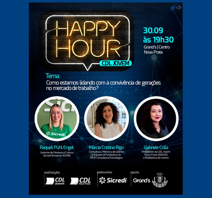 24/09 - Happy Hour CDL Jovem | SINDILOJAS - APOIA e CONVIDA por CDL Nova Prata