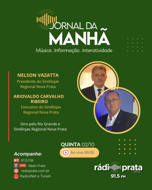 01/10 - Presidente e Executivo do SINDILOJAS em entrevista na Rádio Prata (02/10/2025).