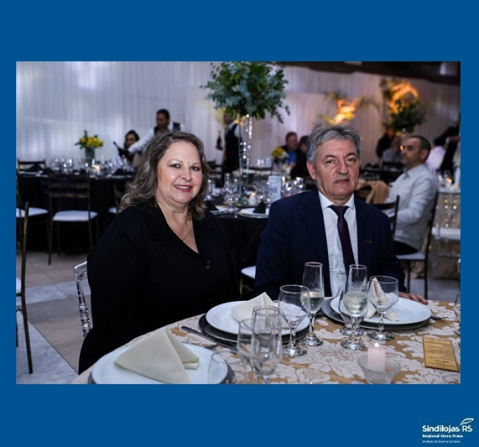 > Na noite de 22/11 (sábado), aconteceu no Centro de Eventos Mário Bianchi, em Farroupilha, o Jantar Baile com a entrega do “Troféu Lojista 2025”. Representando o Sindilojas Regional Nova Prata, estiveram presentes o Nelson Vazatta e a esposa Nilsa Zanotto Vazatta. O Presidente da Fecomércio-RS, Luiz Carlos Bohn, também esteve presente.