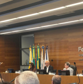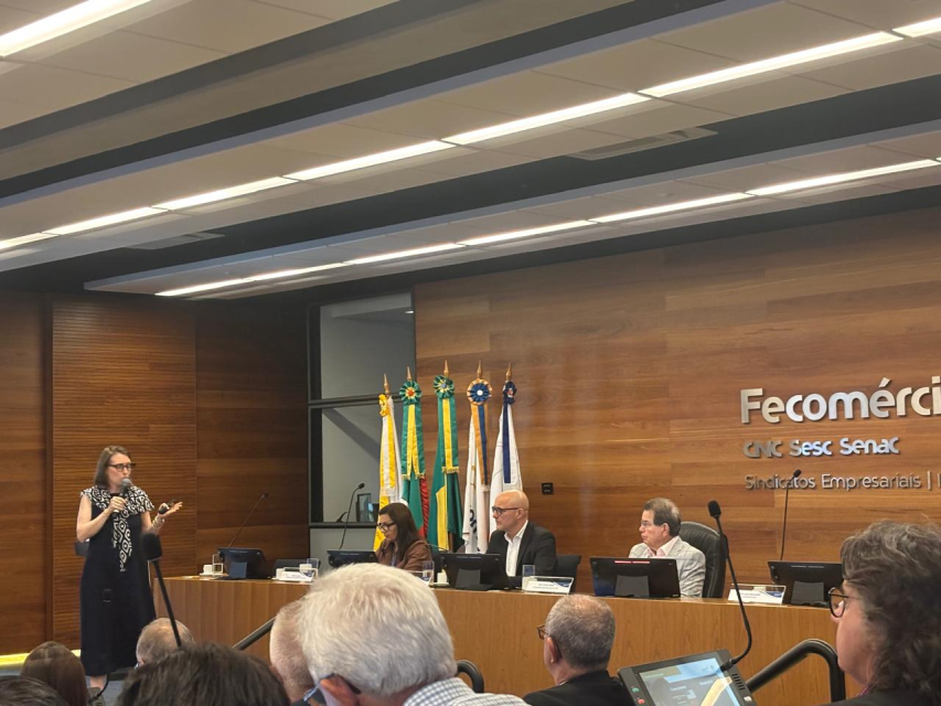 A economista da entidade, Giovana Menegotto, falou sobre a perspectiva econômica, analisando os cenários internacional e nacional, a atividade econômica, juros, inflação e mercado de trabalho. Giovana destacou a ausência de vetor de crescimento da economia vindo do cenário externo, com projeção do FMI de crescimento da economia global de 3,3% em 2026 e 3,2% em 2027. A geopolítica, com a competição entre potências, elevou a incerteza, a reorganização das cadeias globais, causando um ambiente adverso ao crescimento. Porém, neste contexto, um fator favorável aos países emergentes foi a desvalorização do dólar. Em relação à atividade econômica, o Brasil está em uma desaceleração gradual, que deve seguir em 2026. A projeção do Relatório Focus é de 1,8% de crescimento em 2026, 2,3% em 2025, sendo que em 2024 o índice foi de 3,4%.
