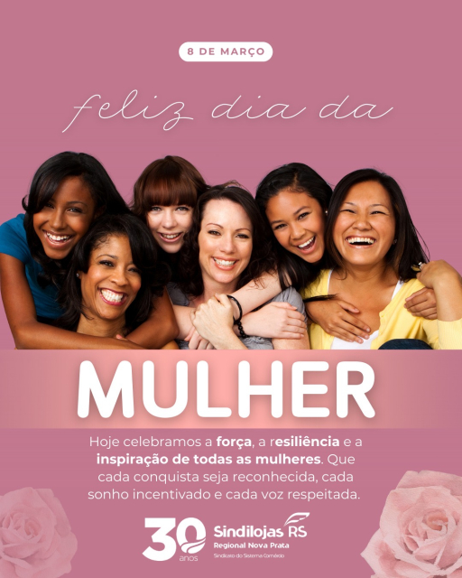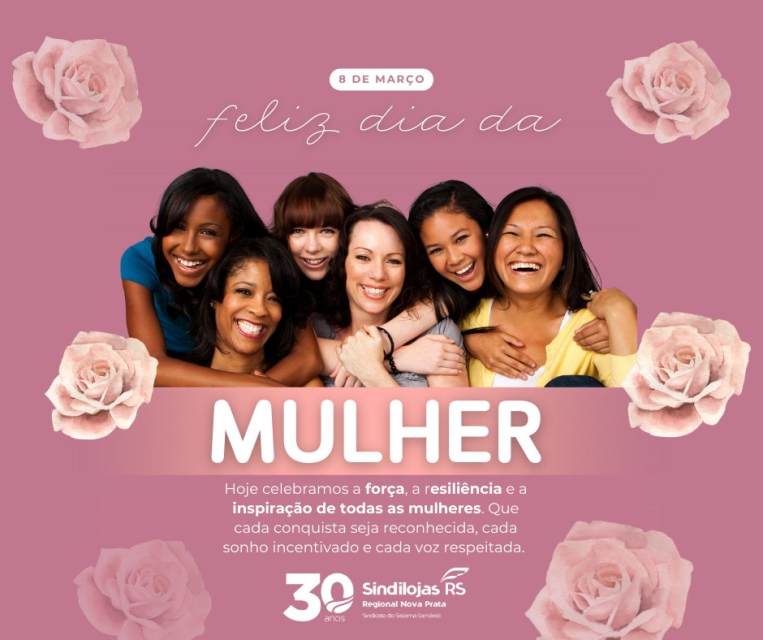 08/03 - Dia Internacional da Mulher 2026 - mensagem do Sindilojas Regional Nova Prata.