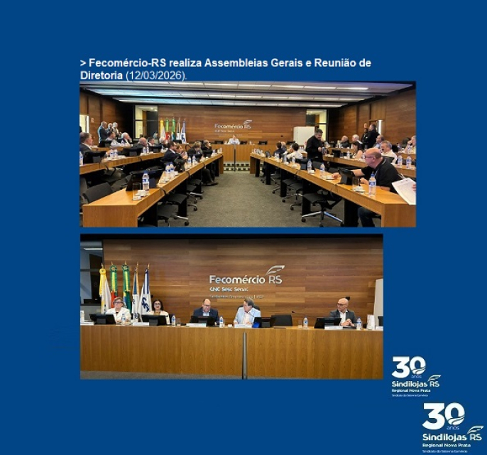 13/03 - Fecomércio-RS realiza Assembleias Gerais e Reunião de Diretoria (12/03/2026).