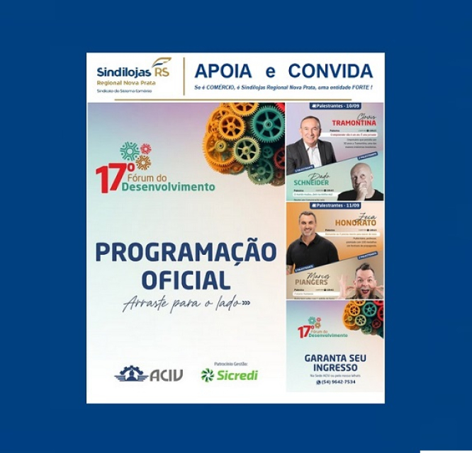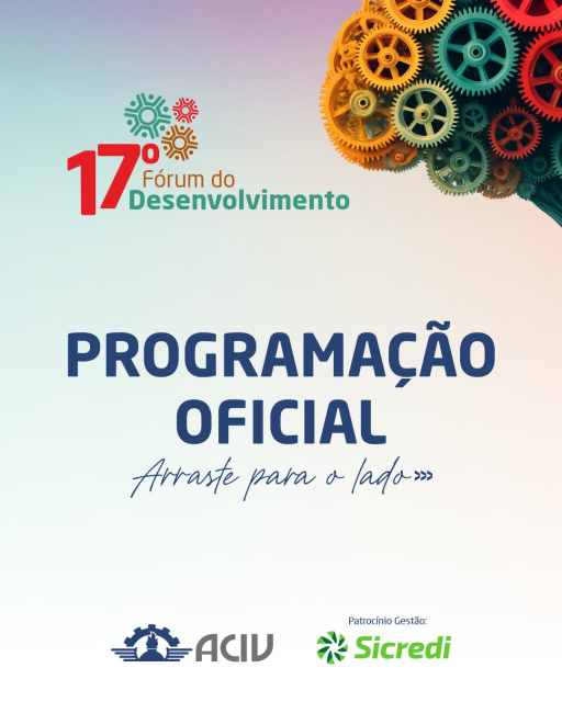 Programação oficial do “17º Fórum do Desenvolvimento”, realizado pela ACIV Veranópolis - Sindilojas Regional Nova Prata - APOIA e CONVIDA: