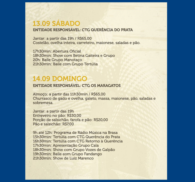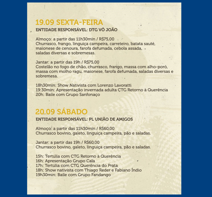 Vamos juntos viver a cultura, a música e o sabor do nosso Rio Grande!