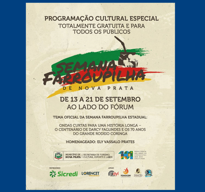 Semana Farroupilha de Nova Prata, de 13 a 21 de setembro (programação completa) – Por Município de Nova Prata – Sindilojas Regional Nova Prata APOIA e CONVIDA.
