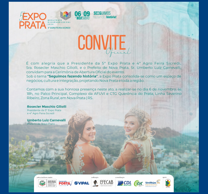 De 06 a 09 de novembro, o coração da Serra Gaúcha bate mais forte na 5ª Expo Prata e 4ª Agro Feira Sicredi! / Convite Oficial e Programação.