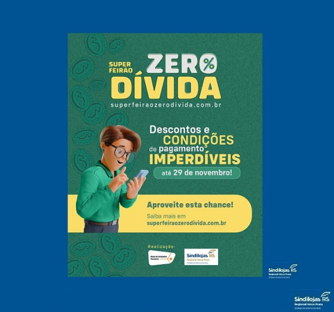 > A Campanha ocorre de 24 a 29 de novembro, em formato 100% digital, e reúne empresas de todo o RS. O Sindilojas Regional Nova Prata, em parceria com a Rede de Entidades Parceiras, realiza, de 24 a 29 de novembro, o Super Feirão Zero Dívida 2025, uma das maiores iniciativas do Estado voltadas à renegociação de débitos. Este ano, mais de 4,5 mil empresas participam da campanha, que será totalmente digital e acessível para consumidores de todo o Rio Grande do Sul. A ação chega em um momento marcado por juros elevados, reforço da renda e recordes de inadimplência. Em 2024, o Feirão encaminhou R$ 8 milhões em negociações, reforçando sua relevância como instrumento de recuperação financeira para famílias e empresas.