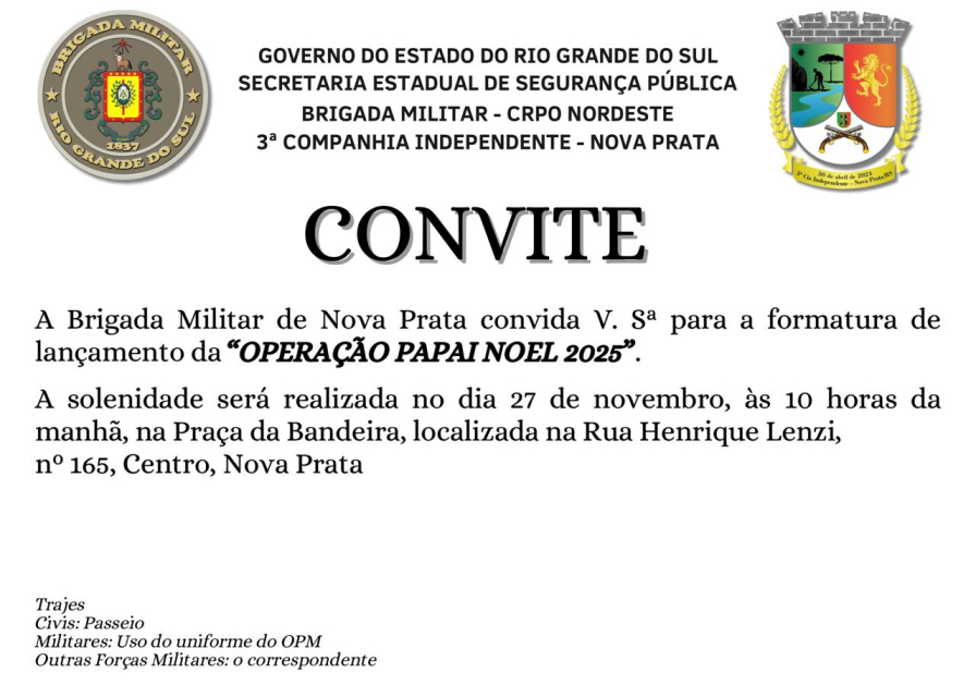 05/12 - Solenidade de Lançamento da Operação Papai Noel 2025 - Brigada Militar de Nova Prata (27/11/2025).