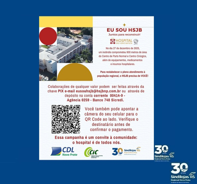 O Hospital São João Batista precisa do apoio de todos nós. Após o incêndio que comprometeu áreas essenciais, cada contribuição faz a diferença para restabelecer o atendimento à nossa comunidade.