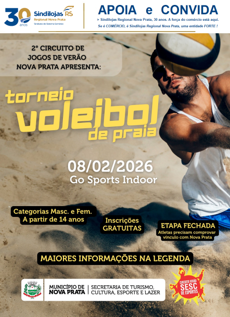 28/01 - Torneio de Voleibol SESC vem aí! / Nova Prata – Sindilojas Regional Nova Prata.