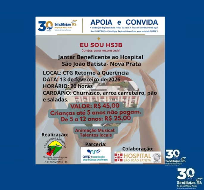 30/01 - Jantar Beneficente ao HSJB de Nova Prata / CTG Retorno à Querência.