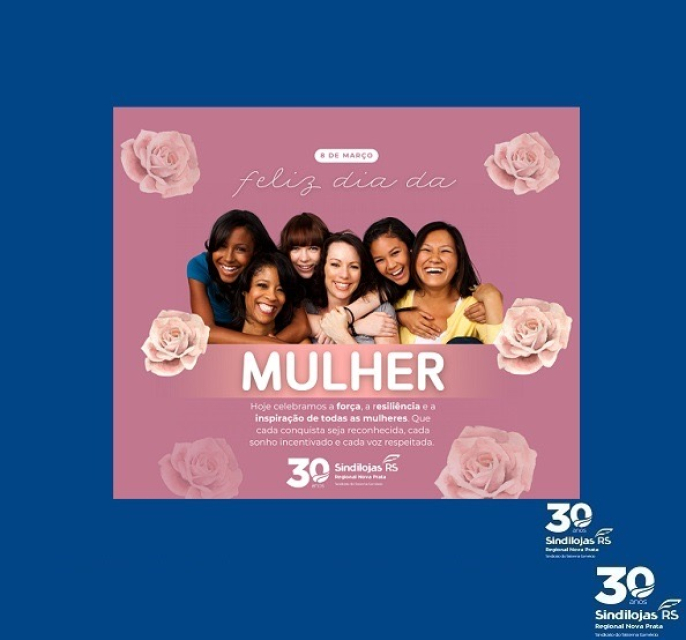 08/03 - Dia Internacional da Mulher 2026 - mensagem do Sindilojas Regional Nova Prata.