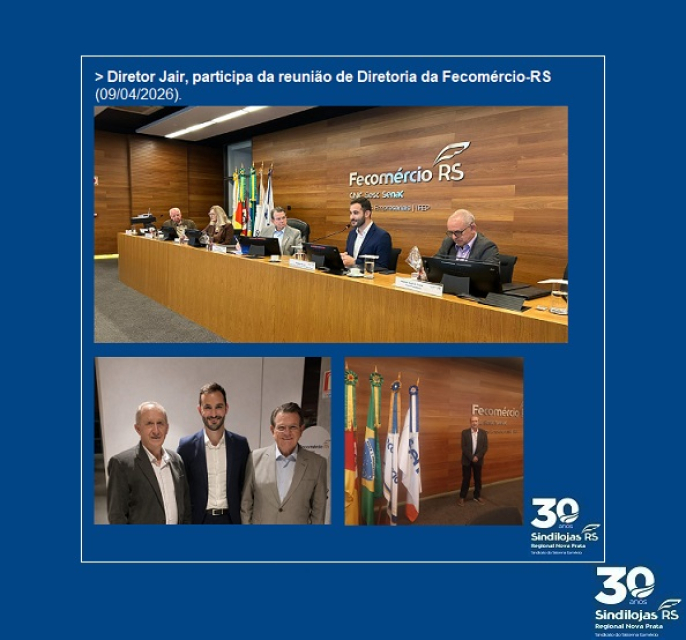 10/04 - Diretor Jair, participa da reunião de Diretoria da Fecomércio-RS (09/04/2026).