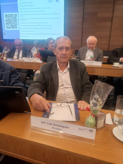 O Diretor do Sindilojas Regional Nova Prata e Diretor da Fecomércio-RS Jair Luiz Guadagnin, esteve presente. A reunião contou com a participação Ex-secretário de Parcerias de Porto Alegre, Giuseppe Riesgo, participa de reunião de diretoria da Fecomércio-RS
